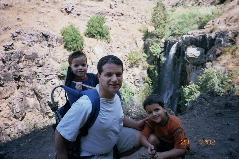 ה-20 בספטמבר 2002, אלעד גור ואבא וברקע מפל הג'ילבון ברמת הגולן.